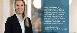 We’re very happy to experience, that despite a busy post-summer market reopening, the EUR-investor community recognizes our name and quality and are once again willing to finance investments into the sustainable transition of the Danish local communities.